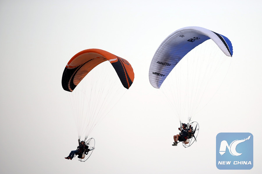 Feature: World paramotor slalom championship in Egypt promotes air sports, tourism
