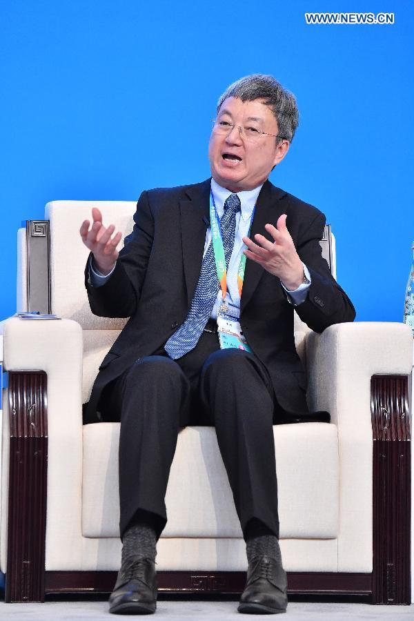 Zhu Min, chairman of National Institution of Financial Research of Tsinghua University, speaks at the Parallel Session on Trade and Investment of the Hongqiao International Economic and Trade Forum in Shanghai, east China, Nov. 5, 2018.(Xinhua/Li Xin)