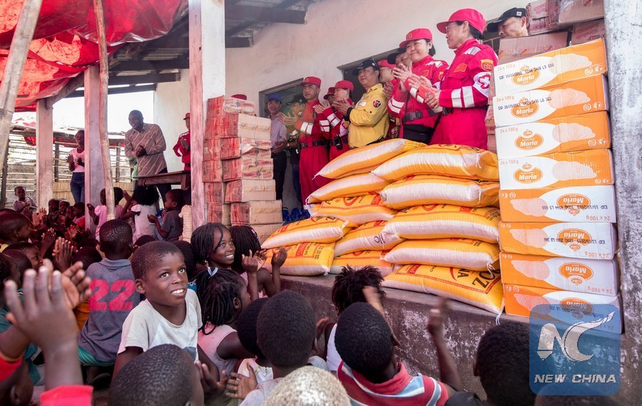 BEIRA, Mozambique, March 29 (Xinhua) -- Chinese rescuers donated food and drinking water for hundreds of children at an orphanage and a community school in central Mozambique on Thursday.