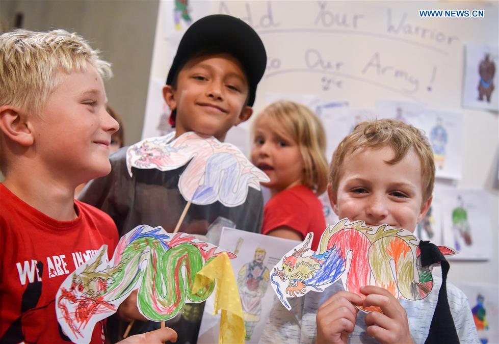 Children show their decorated Chinese dragons in Te Papa, the national museum of New Zealand in Wellington, New Zealand, Jan. 23, 2019. (Xinhua/Guo Lei)
