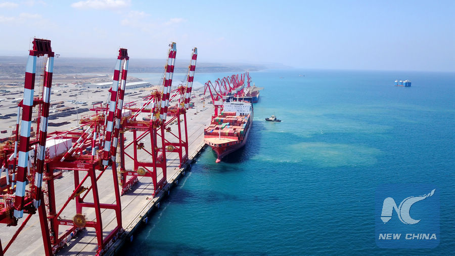 Aerial photo taken on Nov. 30, 2017 shows the Doraleh Multi-Purpose Port in Djibouti. Djibouti is not only a hub of maritime traffic and trade between Europe, Asia and Africa, but also an important gateway to Africa for the construction of the 21st-Century Maritime Silk Road. In recent years, a number of China-Djibouti cooperation projects have made important contributions to promoting China-Djibouti economic and trade cooperation. (Xinhua)