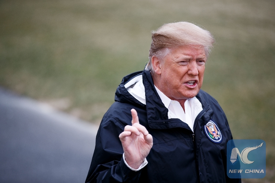 File Photo: U.S. President Donald Trump speaks to reporters before leaving for Alabama to survey areas devastated by powerful tornadoes, in Washington D.C., the United States, on March 8, 2019. (Xinhua/Ting Shen)