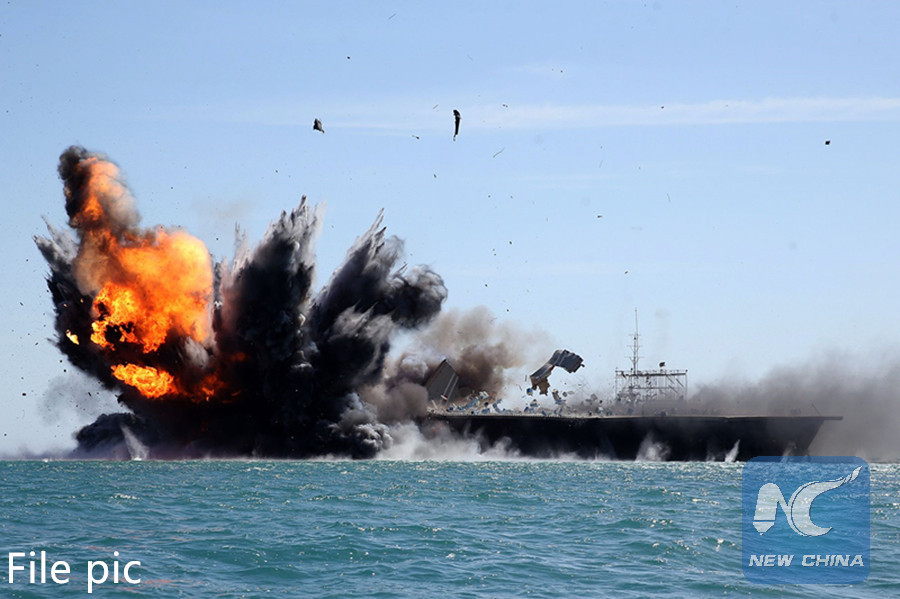 In this file photo taken on February 25, 2015 Iran's Islamic Revolution Guards Corps troops attack a naval vessel during a military drill in the Strait of Hormuz in southern Iran. (AFP photo)