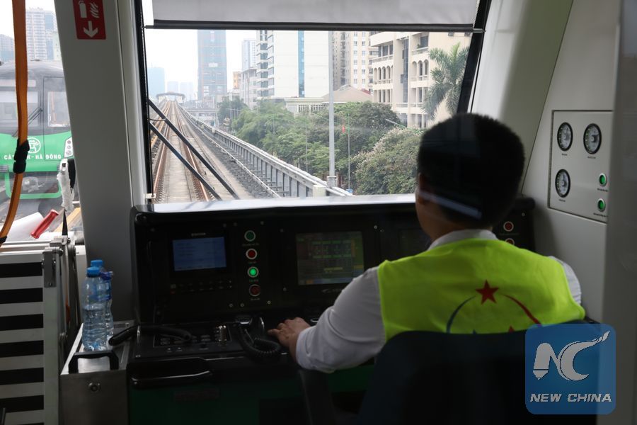 HANOI, June 11 (Xinhua) -- "Everything has gone well," said smiling Hoang Tuan Anh, one of Vietnam's first urban railway train drivers, right after he and his colleagues proficiently "parked" a greenish silver train at its depot on Friday afternoon.