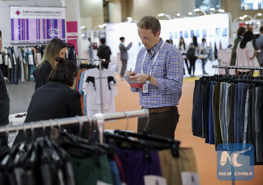 File Photo: An American buyer takes notes at the booth of a Chinese clothing producer at the 2018 Chinese Textile and Apparel Trade Show in New York, the United States, July 23, 2018. (Xinhua/Wang Ying)