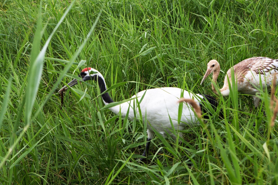 Red-crowned cranes are seen at Zhalong National Nature Reserve in Qiqihar, northeast China's Heilongjiang Province, July 31, 2018. (Xinhua/Wang Kai)