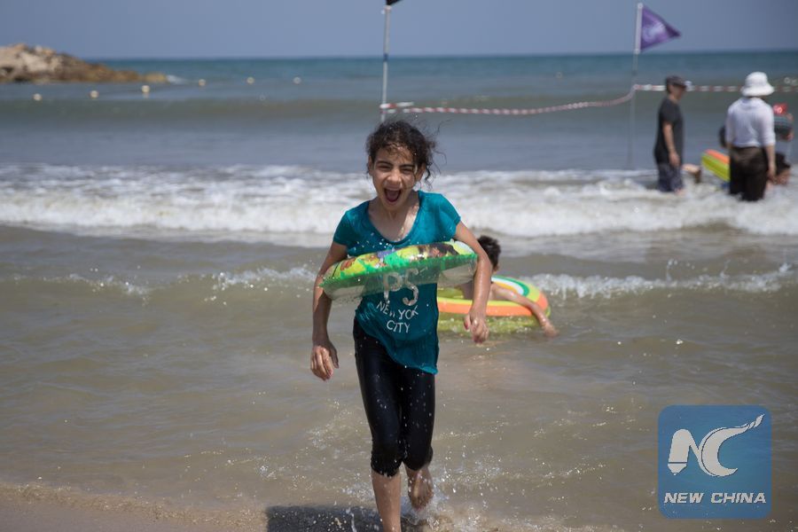 JERUSALEM, July 15 (Xinhua) -- It was a hot July morning at the Tel Aviv beach, where the waves were as high as the humidity under the scorching sun.