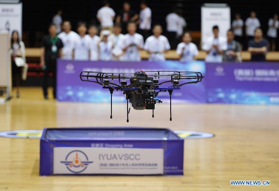 Contestants control an unmanned aerial vehicle (UAV) during the first International Youth UAV Science Camp & Competition (IYUAVSCC) in Xi'an, northwest China's Shaanxi Province, July 21, 2019. The first IYUAVSCC, launched by Chinese Society of Aeronautics and Astronautics (CSAA) and Northwestern Polytechnical University, kicked off here on Monday, attracting high school students from home and abroad. (Xinhua/Shao Rui)