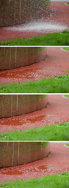 This combo photo taken on May 28, 2019 shows how a permeable pavement works to reduce run-off volume in Pingxiang, east China's Jiangxi Province. (Xinhua/Peng Zhaozhi)
