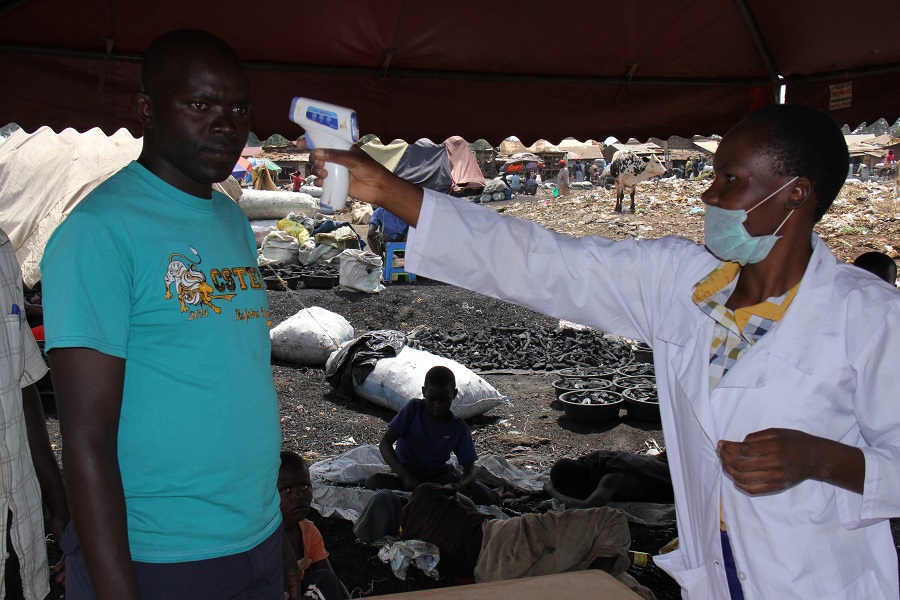 A man is screened for Ebola virus disease at the Kenya-Uganda border in Busia, Kenya, June 19, 2019. (Xinhua/Fred Mutune)