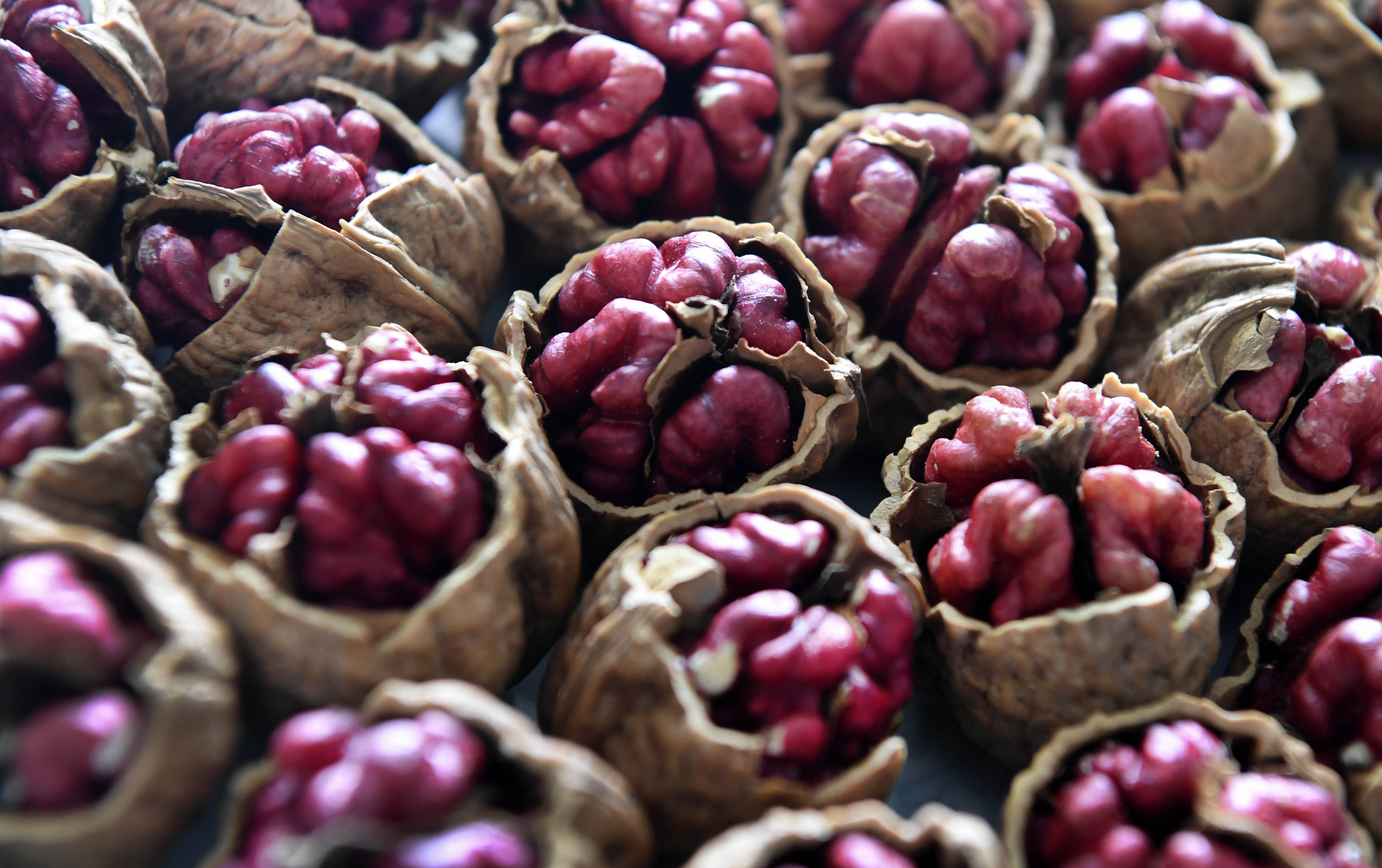 Nutrient, crunchy and flavorful, walnut with red kernels are brightening the walnut market for farmers in northwest China's Luonan.