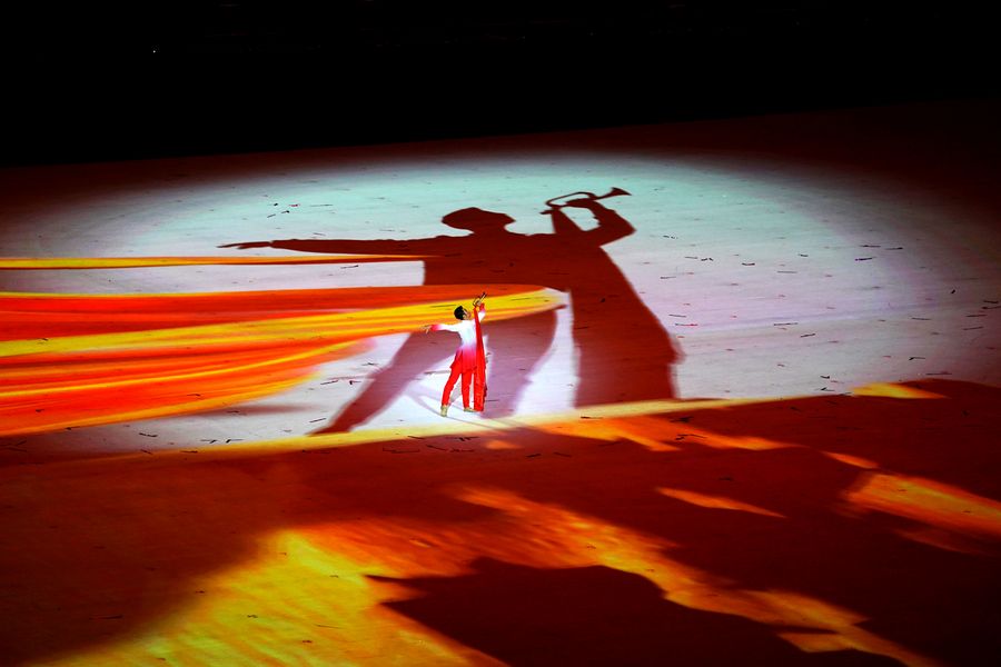 An actor performs during the opening ceremony of the 2nd China Youth Games in Taiyuan, north China's Shanxi Province on August 8, 2019. (Xinhua/Zhan Yan)