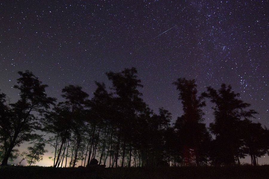 File photo: A flashing meteor is seen during the Perseid Meteor Shower in the starry sky above the woods in Strigova, Croatia, on Aug. 12, 2018. (Xinhua/Vjeran Zganec Rogulja)