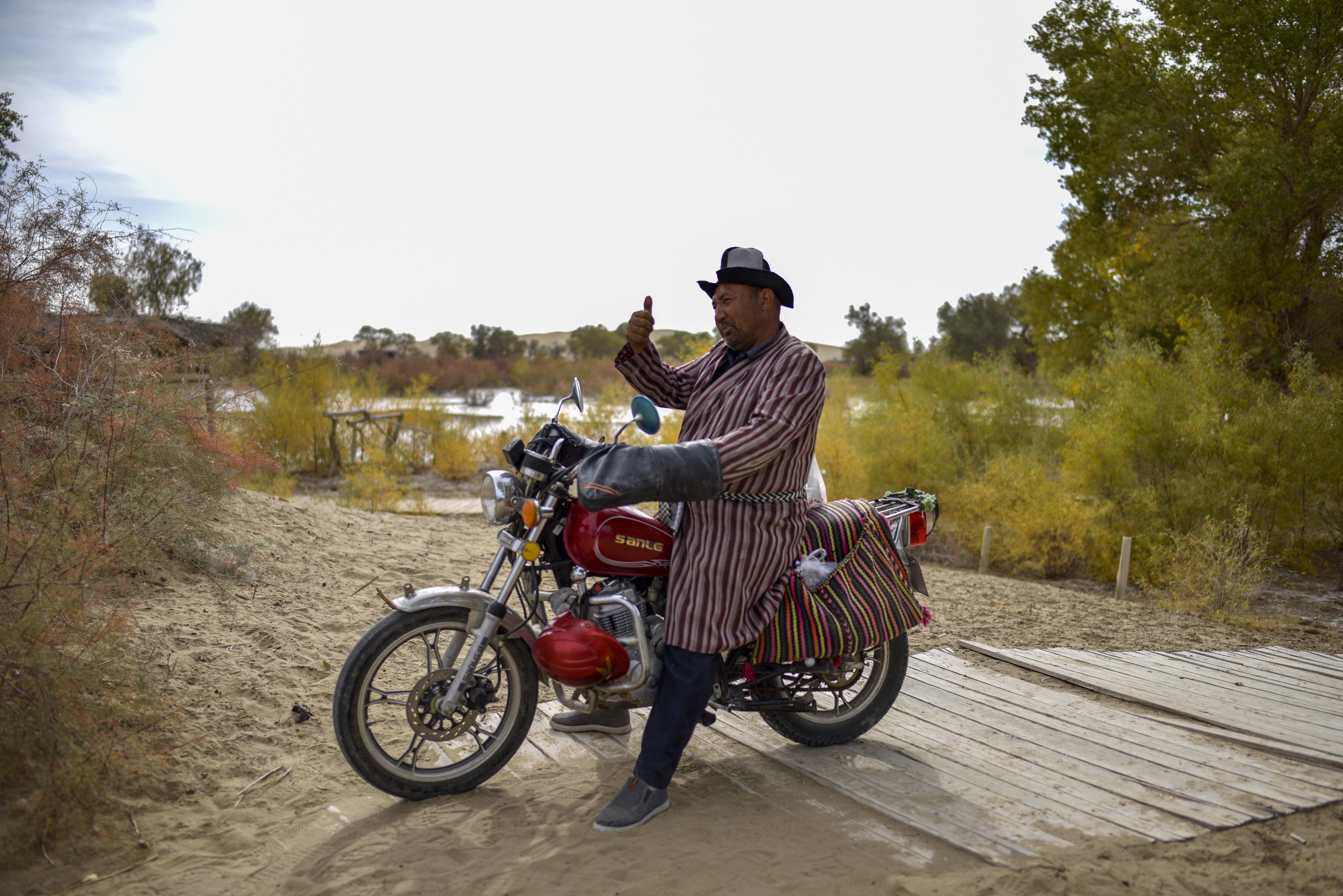 Like other local villagers, Amudun Abudu's life benefits from the improvement of the environment. Since the initiation of management of Tarim waters, the silted up river bed has been filled with water again. Along the river bank, populus euphratica forests were brought back to life. Meanwhile, the improvement of infrastructure leads to the increase of visiting tourists. By the end of July, Yuli County has welcomed 780,000 arrivals and received over 110 million yuan (around 15.58 million U.S. dollars) in tourist revenue, up 63.14% and 119.42% on a year-on-year basis.