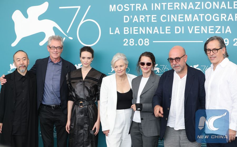 Main competition jury members pose on the red carpet of the opening ceremony of the 76th Venice International Film Festival in Venice, Italy, Aug. 28, 2019. (Xinhua/Zhang Cheng)