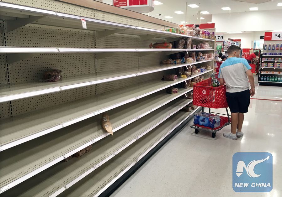Shoppers encounter empty bread shelves at a store while buying supplies ahead of the arrival of Hurricane Dorian in Kissimmee, Florida, U.S. August 29, 2019. (Xinhua/REUTERS)