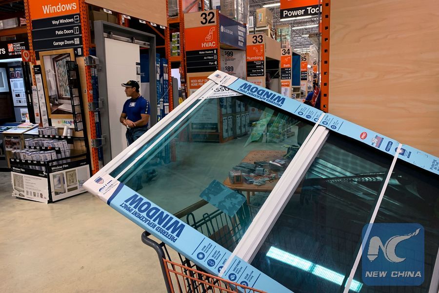 An impact window is seen inside a shopping cart at Home Depot in Miami on August 29, 2019, while residents stock up ahead of Hurricane Dorian's landfall. (Xinhua/AFP)