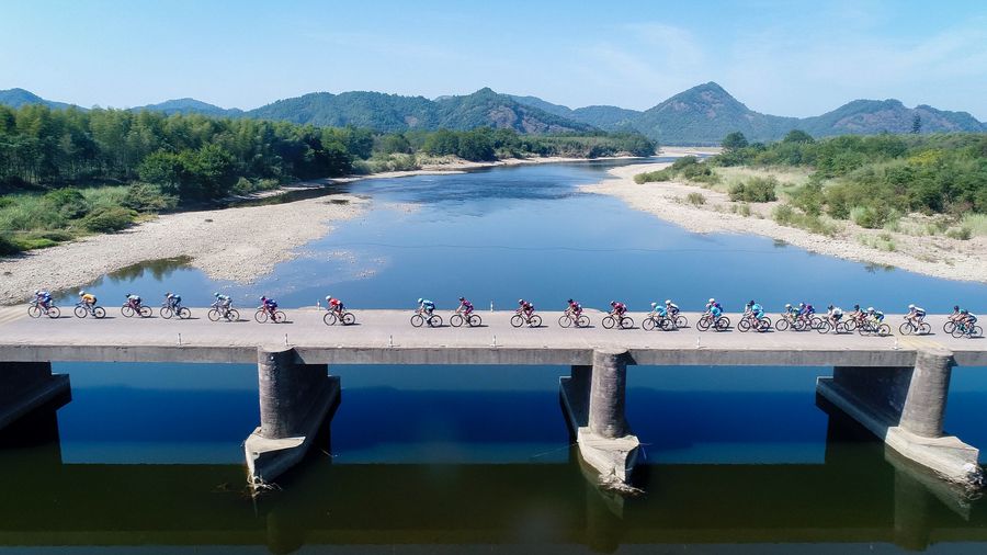 Cyclists compete during the seventh stage of the 10th Tour of Poyang Lake in Yingtan, east China's Jiangxi Province, Sept. 24, 2019. (Xinhua)