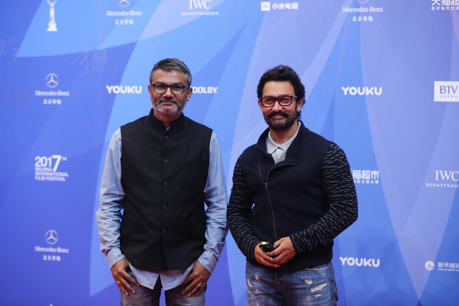 Cast members of the movie "Dangal" pose on the red carpet during the opening ceremony of the 7th Beijing International Film Festival (BJIFF) in Beijing, capital of China, April 16, 2017. (Xinhua/Yin Gang)