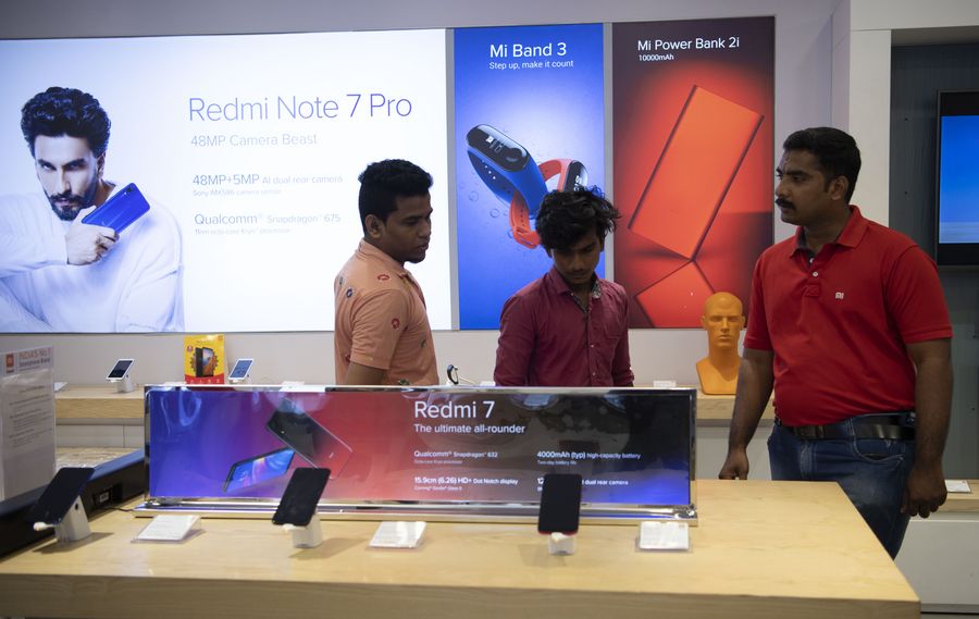 Customers are seen at a store of Chinese technology company Xiaomi in Chennai, India, Oct. 8, 2019. (Xinhua/Lui Siu Wai)