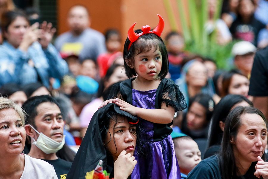 Children dressed in Halloween costumes take part in the "Petrified" Halloween celebration in Quezon City, the Philippines, Oct. 27, 2019. (Xinhua/Rouelle Umali)