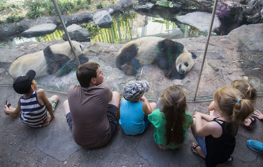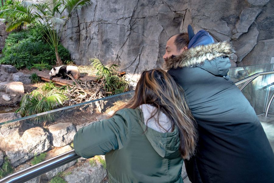 People visit Panda Passage at the Calgary Zoo in Calgary, Canada, on July 16, 2018.(Xinhua/Zou Zheng)