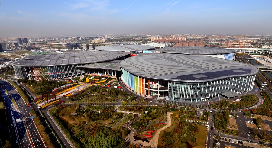 Aerial photo taken on Nov. 1, 2019 shows the National Exhibition and Convention Center (Shanghai), the main venue for the second China International Import Expo (CIIE), in Shanghai, east China. (Xinhua/Fan Jun)