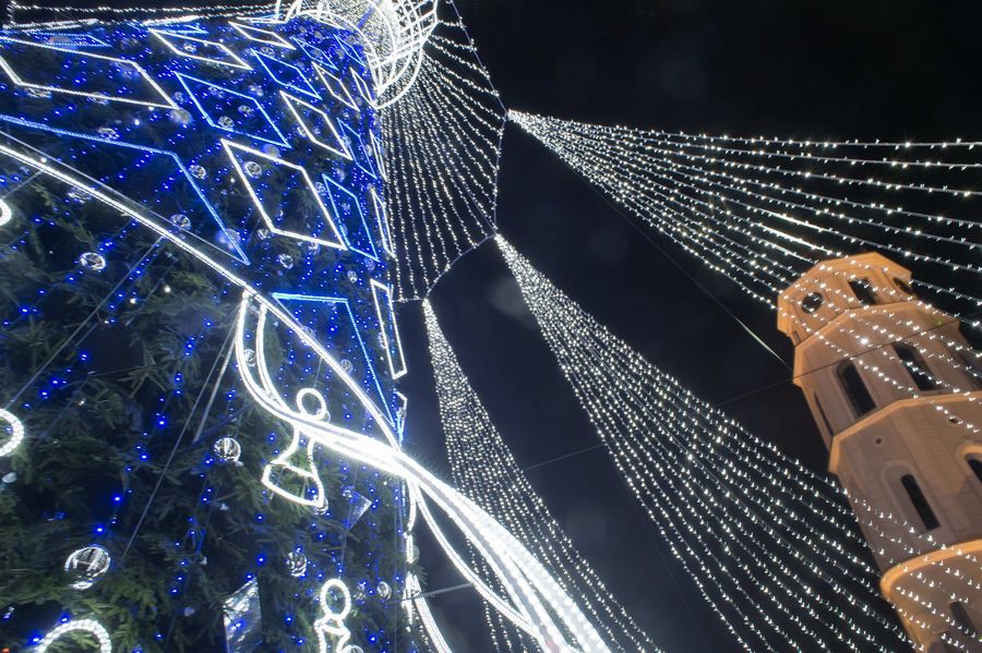 The main Christmas tree is lit up at Cathedral Square in Vilnius, Lithuania. (Photo by Alfredas Pliadis/Xinhua)