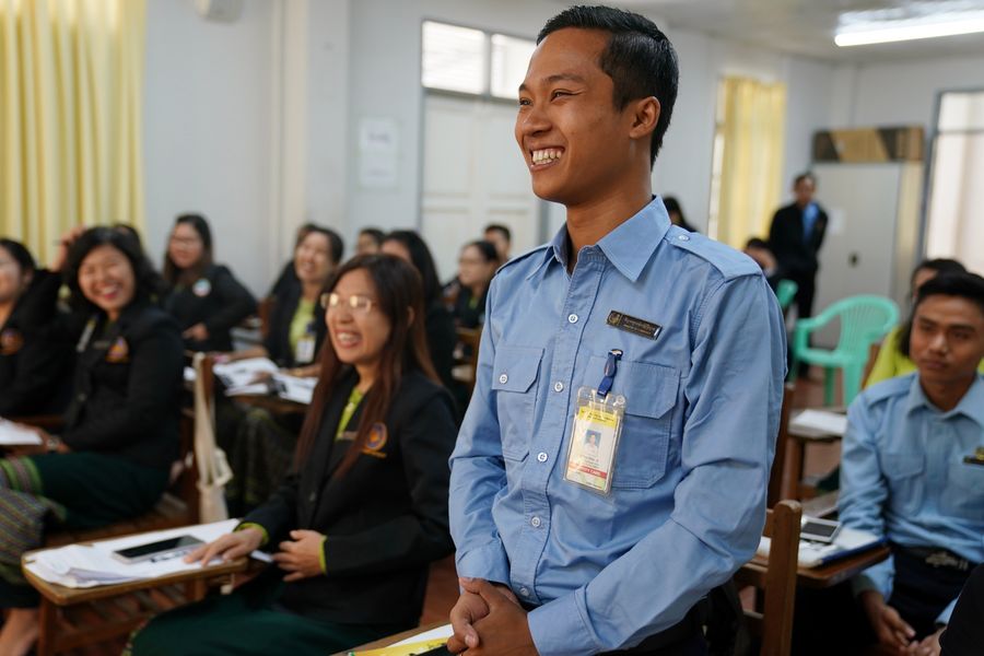 In a classroom here in Myanmar's capital, Lu Rui, a postgraduate from China's Yunnan Normal University, was teaching Chinese in Myanmar Eastern Language and Business Center to over 30 civil servants from Myanmar's Ministry of Commerce.
