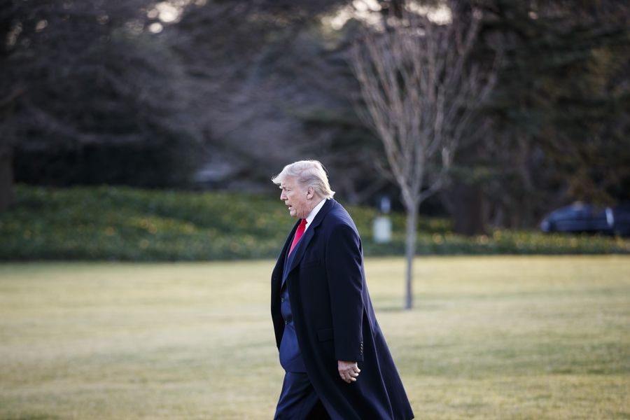 U.S. President Donald Trump walks to board Marine One to depart from the White House for a rally in Ohio, in Washington D.C. Jan. 9, 2020. (Photo by Ting Shen/Xinhua)