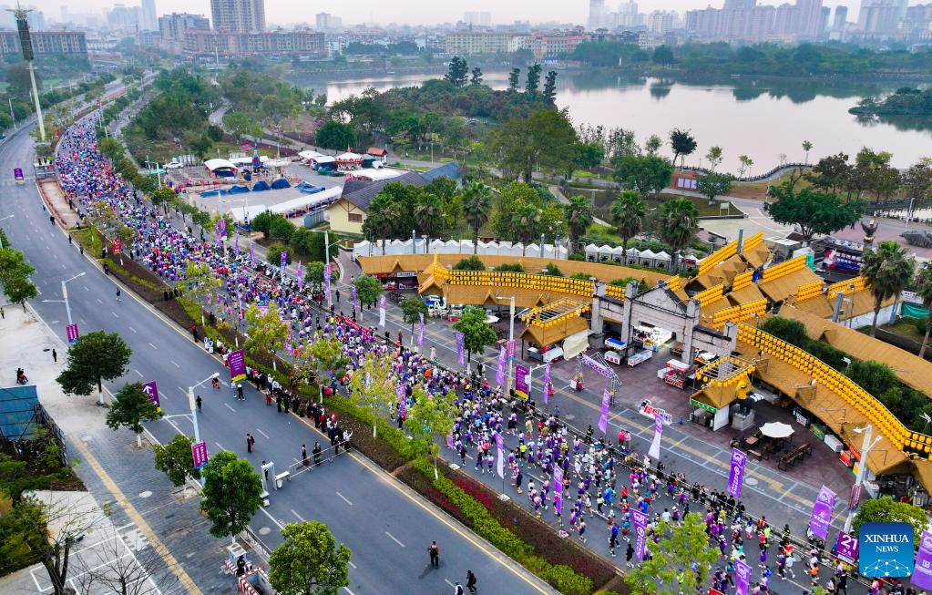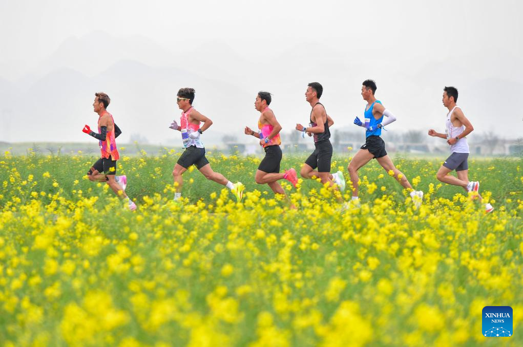 KUNMING, March 18 (Xinhua) -- As the starting gun fired at the Luoping county sports center in Qujing, southwest China's Yunnan Province, for the 2026 Qujing Luoping Grand Blossom Marathon on March 15, over 20 international participants from eight countries and regions, including Thailand, Slovenia, Singapore and Bangladesh, alongside runners from across China, took to the flower-bordered course.