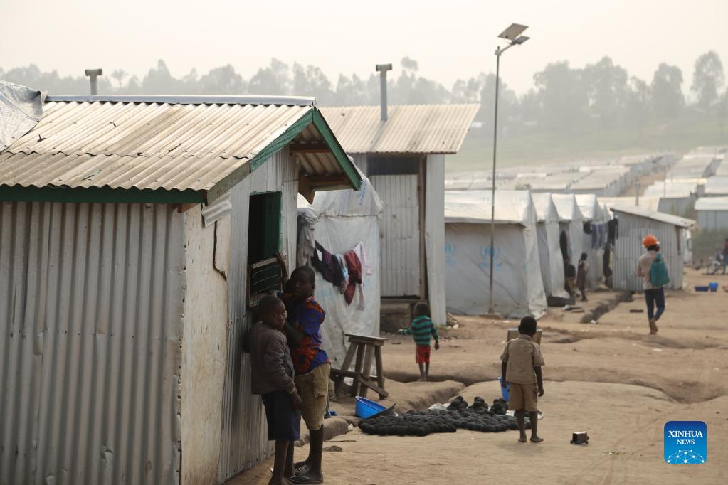 Children are seen in a camp for internally displaced persons (IDPs) in Ituri province, northeastern Democratic Republic of the Congo, March 17, 2022. Despite all the challenges, peace and state authority will be restored in Ituri, a violence-laden province in northeastern Democratic Republic of the Congo (DRC), reassured Lieutenant-General Johnny Luboya, Ituri's military governor, in a recent exclusive interview with Xinhua. (Photo by Alain Uaykani/Xinhua)