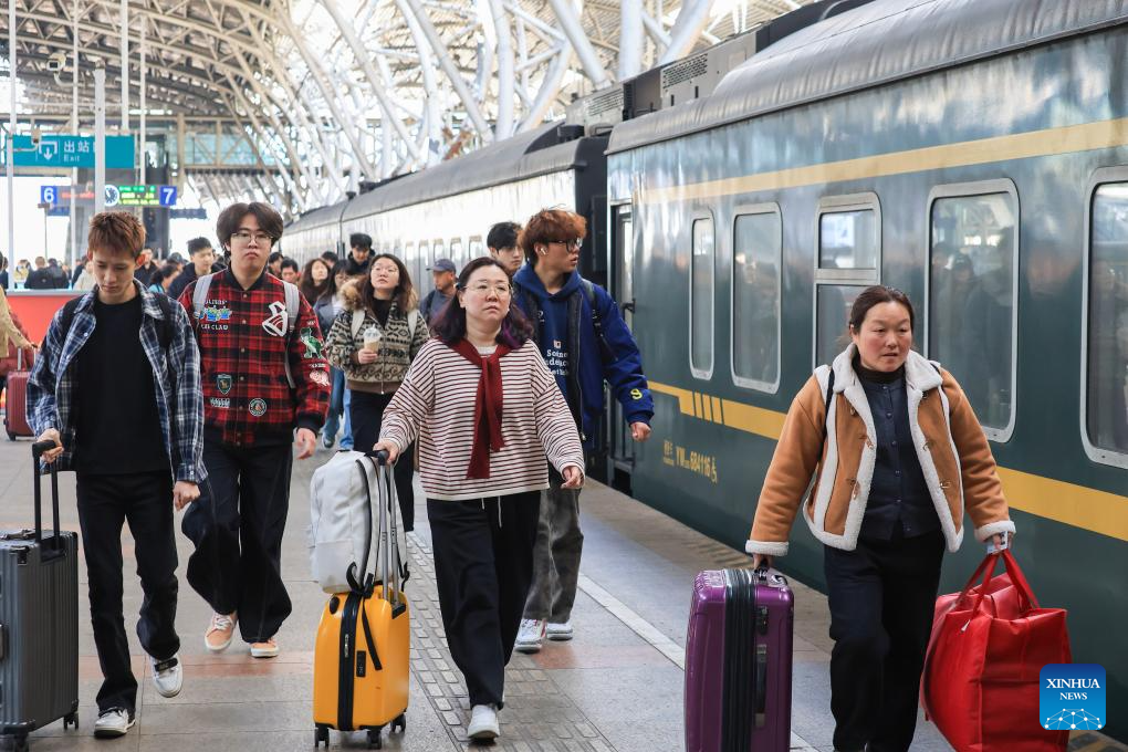 Passengers are pictured at a platform of Nanjing Railway Station in Nanjing, east China's Jiangsu Province, March 13, 2026. The 2026 Spring Festival travel rush comes to an end on Friday. (Photo by Su Yang/Xinhua)