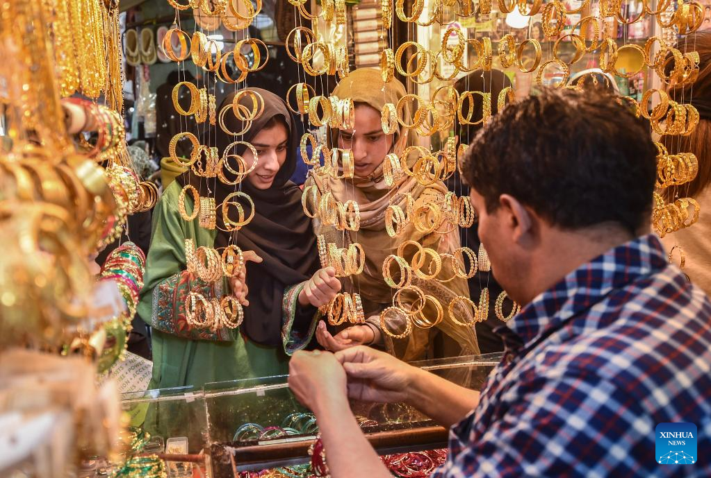 Women buy bangles ahead of the Eid al-Fitr in Srinagar, the summer capital of Indian-controlled Kashmir, March 17, 2026. (Xinhua/Javed Dar)