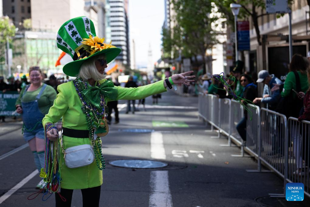 People attend the St. Patrick's Day Parade in San Francisco, the United States, March 14, 2026.