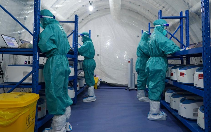 Chengdu builds 5 air-inflated labs for COVID-19 nucleic acid testing