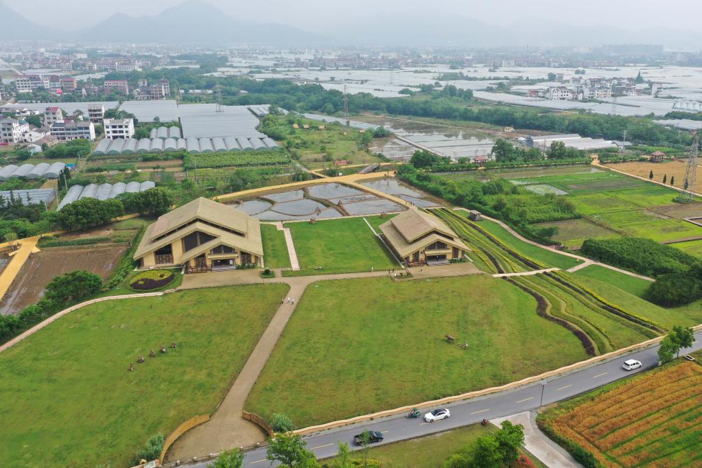 5月12日拍攝的位于浙江省浦江縣的上山考古遺址公園(無(wú)人機(jī)照片)。新華社記者 黃宗治 攝