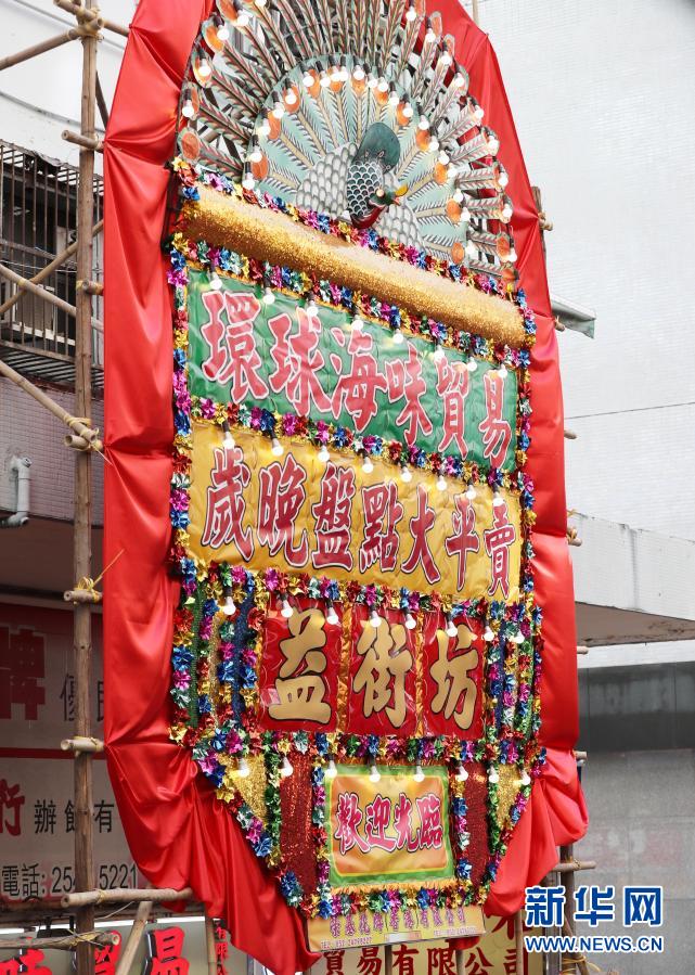 春節將至,行走在香港新界的元朗街頭,不時能看到高達兩三層樓的大型裝飾花牌矗立路邊,其上描龍畫鳳、花團錦簇,寫滿了“恭賀新禧”“丁財兩旺”“金銀滿堂”等祝福語,為新冠肺炎疫情陰霾下的香港平添了幾分喜氣。