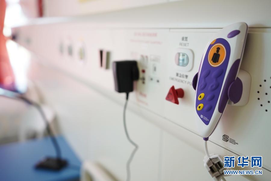安心、溫馨,這是記者對病房的第一印象。一間病房設置6張床位和一個衛生間,病床分兩排,每張床配有一把椅子、一個床頭柜和一張床上桌,床上鋪蓋一套淺色碎花寢具,床頭背靠的墻面上配備各類醫用檢測儀器,病房內還有智能生態儀器,方便醫護人員測試病患情況。