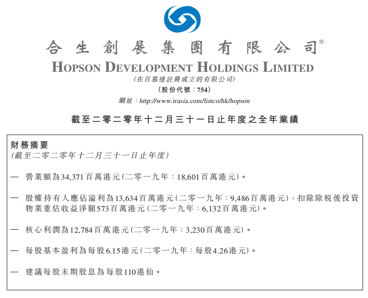 3月24日,合生創展集團有限公司發布2020年度業績公告。公告數據顯示,截至2020年12月31日,合生集團實現營業額人民幣298.59億,同比增長81.2%。