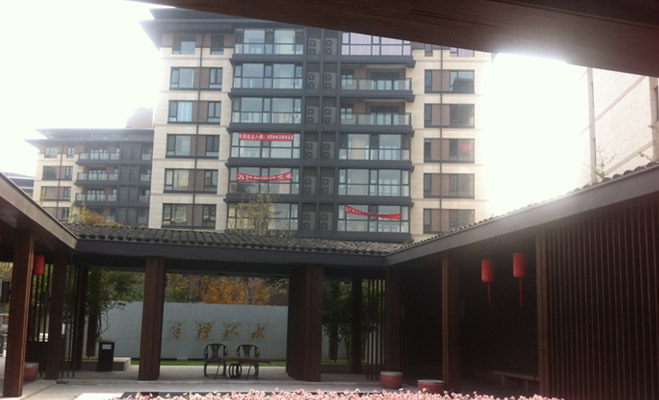 記者進入萬科五礦如園南區,首先被吸引的是入堂口的“半潭秋水”。庭院中一潭水池,而水池旁還設有一臺古琴,頗有幾分韻味。再往小區內進入,還有一片小竹林。據了解,如園共有十六個院落,分別以春夏秋冬、琴棋書畫、風華雪月、梅蘭竹菊中的十六個字作為主題。