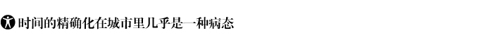 時間的精確化在城市里幾乎是一種病態,與守時無關。城市自身規劃、設計形成的與日俱增的交通擁堵是促使時間精確化的一個重要原因,而城市里商務寫字樓上下班時間幾乎讓人崩潰的電梯之困則是最直觀體現。