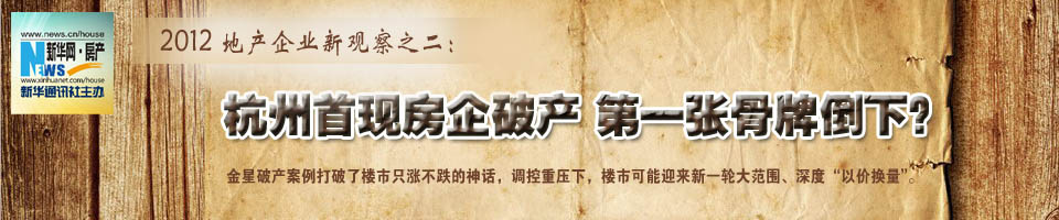 一家名不見經傳的房地產公司——杭州金星房地產開發有限公司突然申請破產,3月30日杭州市余杭區法院受理金星房地產破產案,該公司也成為本輪房地產調控開始以來首家申請破產的房企。據了解,余杭區法院將按照司法程序對其進行資產清算;當地政府也已經開始善后工作。金星房地產為何會借下如此巨款?資金又流向何處?中江控股董事長俞中江在電話中并沒有向中國證券報記者作出明確解釋。 …[詳細]