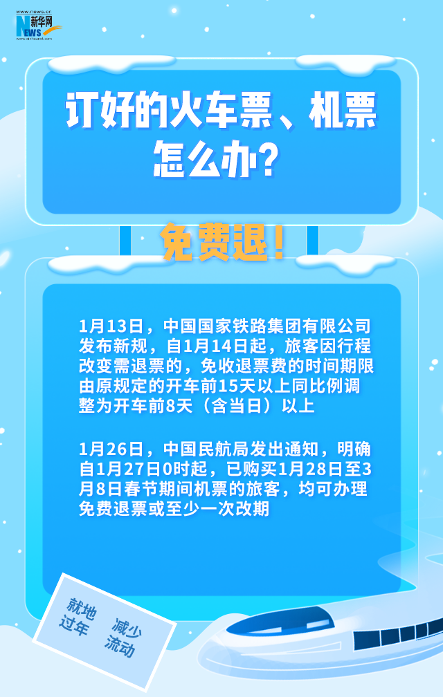 2021年春節假期將近。為減少疫情傳播風險,國家提倡大家就地過年,減少流動。已經訂好的火車票、機票怎么辦?商超、快遞都正常營業嗎?還能出去玩耍嗎?農民工、在校學生怎么辦?空巢老人、留守兒童怎么辦?27日上午,國務院聯防聯控機制召開新聞發布會,結合中辦國辦印發的《關于做好人民群眾就地過年服務保障工作的通知》,對大家關心的多個問題做出解答。