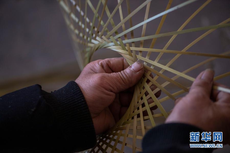 云南省會澤縣大一學生王淼的父親王玉榮在家中編竹編(2月6日)。新華社記者 林碧鋒 攝