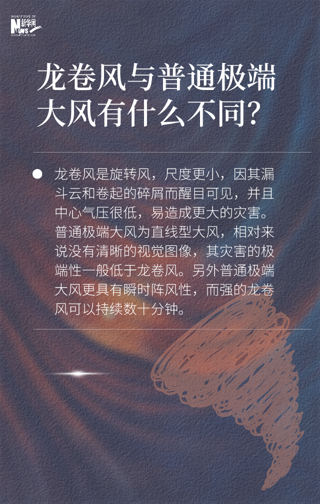 近期我國多地出現(xiàn)強對流天氣,蘇州、武漢兩地遭遇龍卷風(fēng)襲擊,造成人員傷亡和大量民房倒塌。今年內(nèi)陸城市為什么遭遇龍卷風(fēng)?龍卷風(fēng)跟普通極端大風(fēng)的區(qū)別在哪兒?遭遇龍卷風(fēng),我們應(yīng)該怎么辦?關(guān)于龍卷風(fēng)的這些關(guān)鍵知識點,一起掌握。