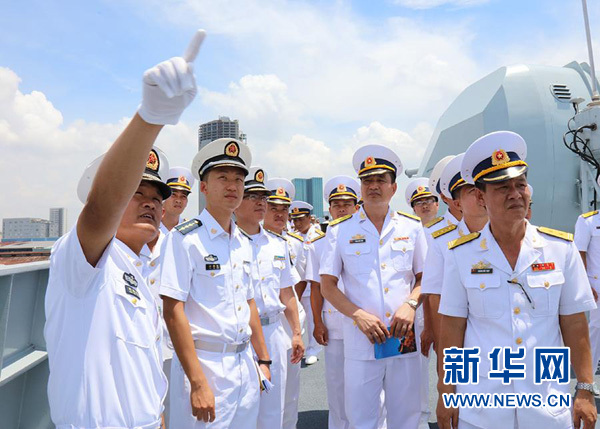 5月6日,在越南胡志明市,越方軍官團參觀中國海軍遠航訪問編隊導(dǎo)彈驅(qū)逐艦長春艦。 新華社發(fā)(史奎吉攝)