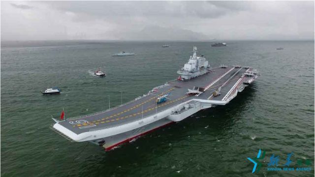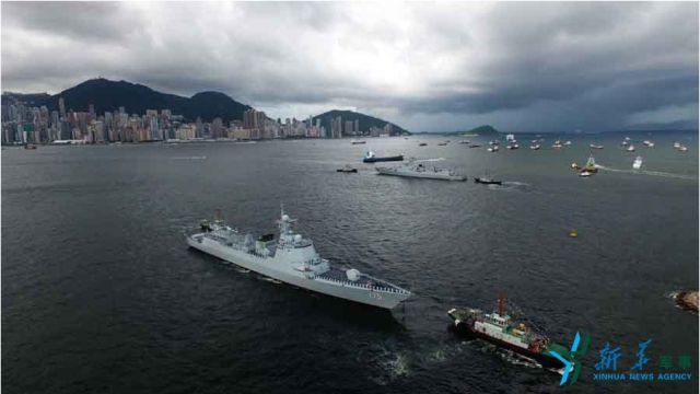 ↑7月7日,海軍濟南艦緩緩駛?cè)胂愀郯捍薮a頭。新華社記者 曾濤 攝