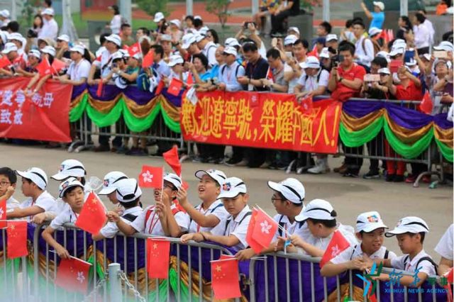 ↑7月7日上午,海軍航母編隊抵達香港。700余名官兵在遼寧艦飛行甲板上列隊排成“香港你好”字樣,以海軍獨有的方式向香港市民表示親切、誠摯問候。解放軍駐香港部隊提供