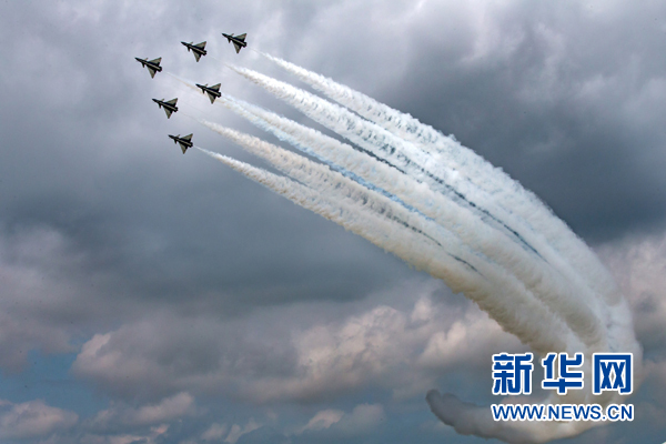 8月4日,中國空軍八一飛行表演隊亮相“航空飛鏢”靶場開放日。新華社發(楊盼 攝)